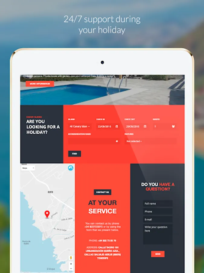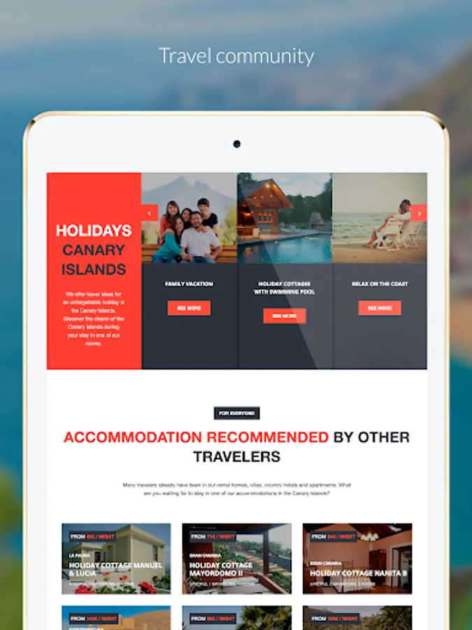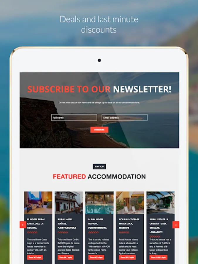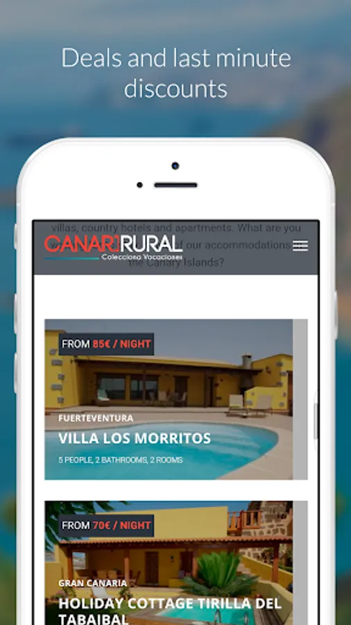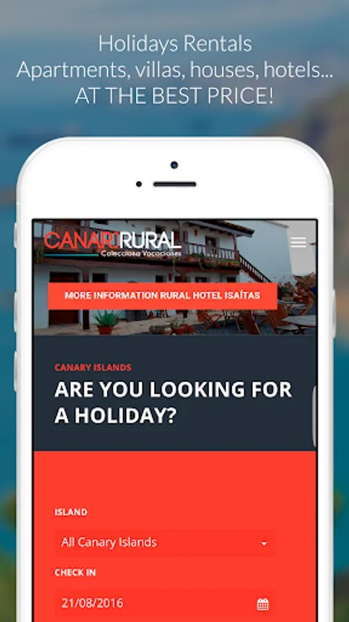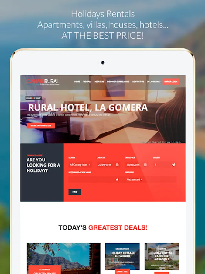 All you need in one application: book rural houses, apartments, villas and hotels and organize your holiday in the Canary Islands.