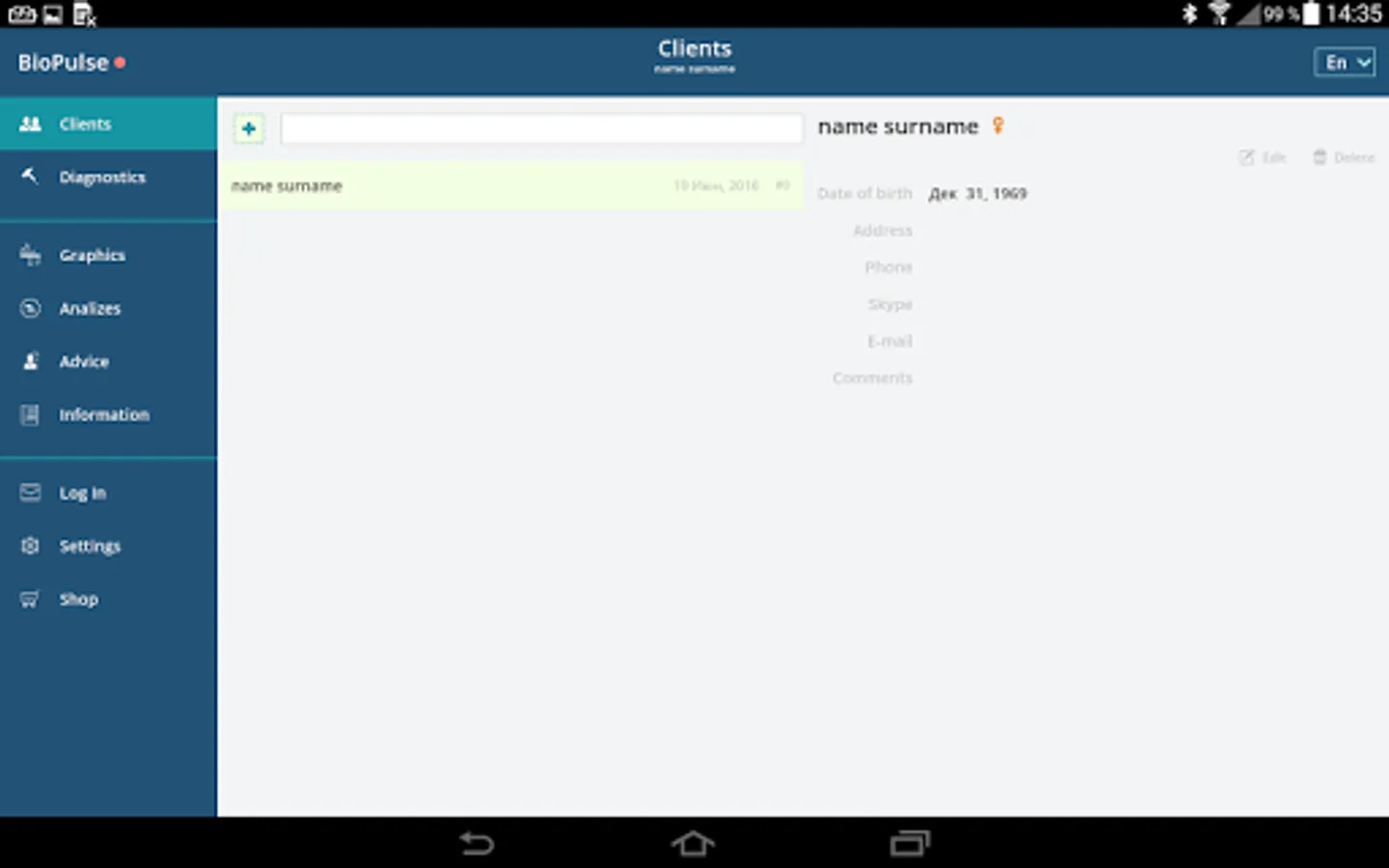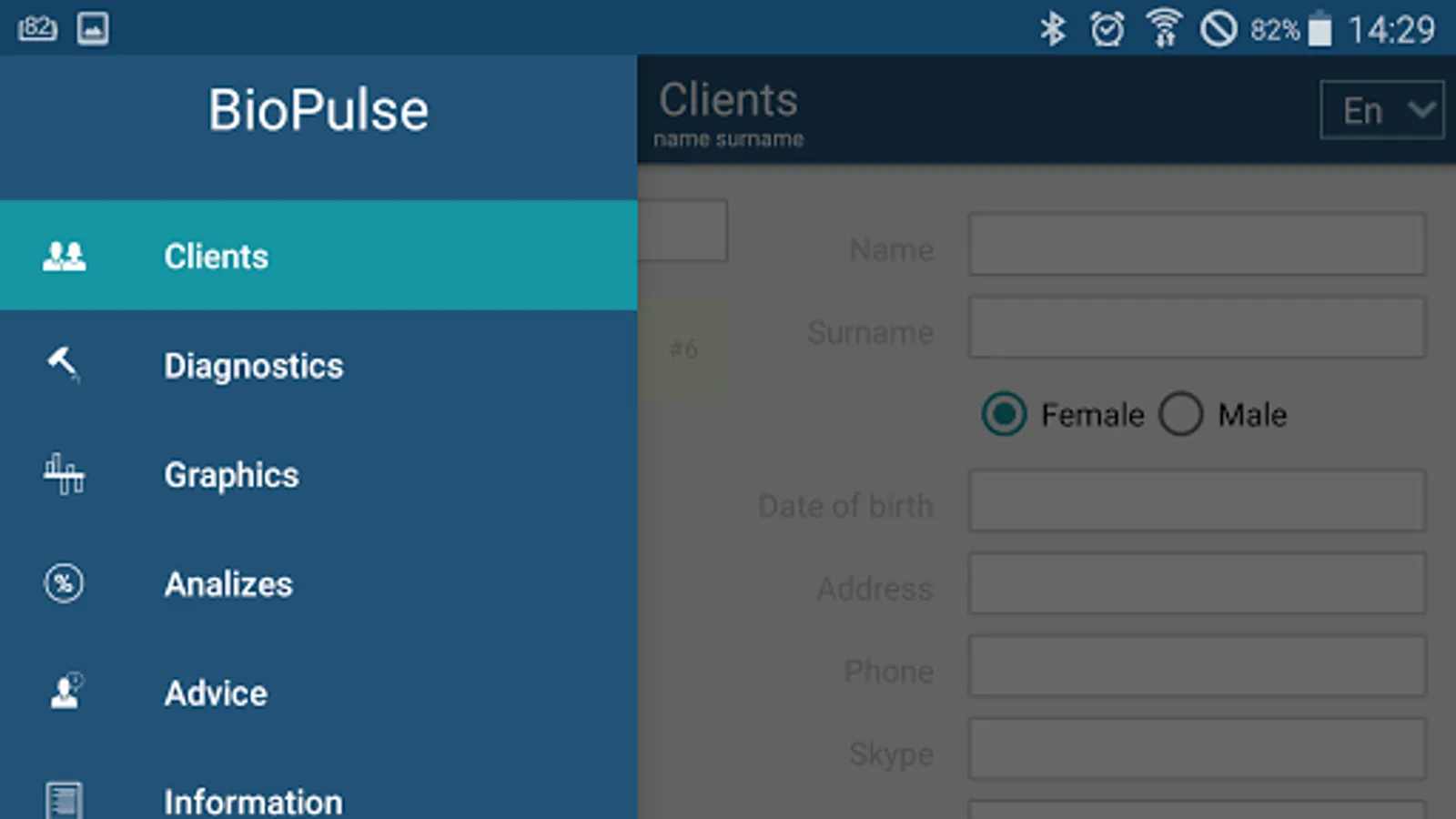 Using a smartphone or tablet a practitioner will be able to manage clients database, enter measurement results and view measurement graphs showing meridian imbalances.