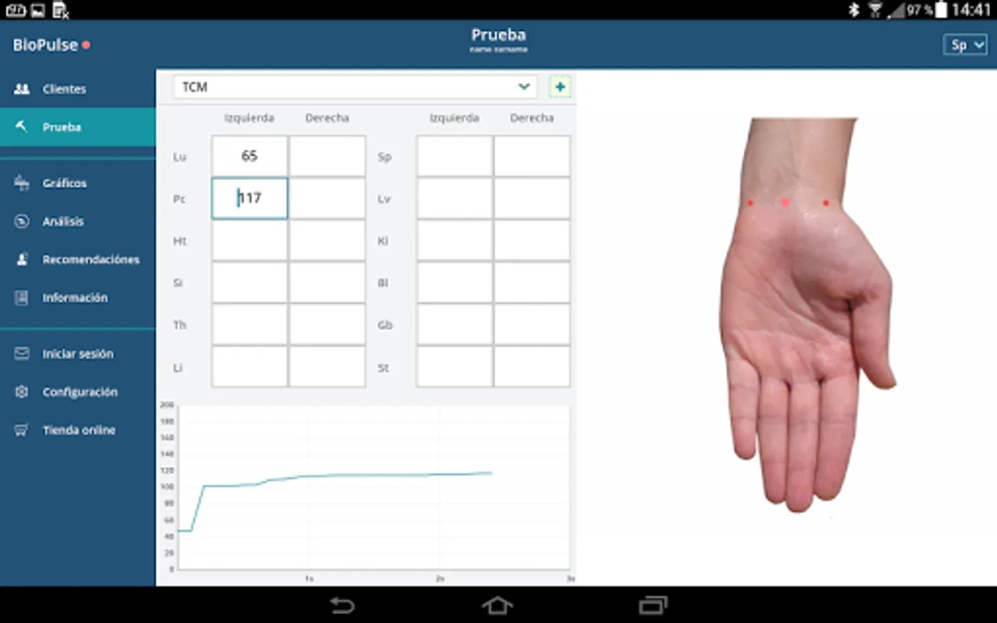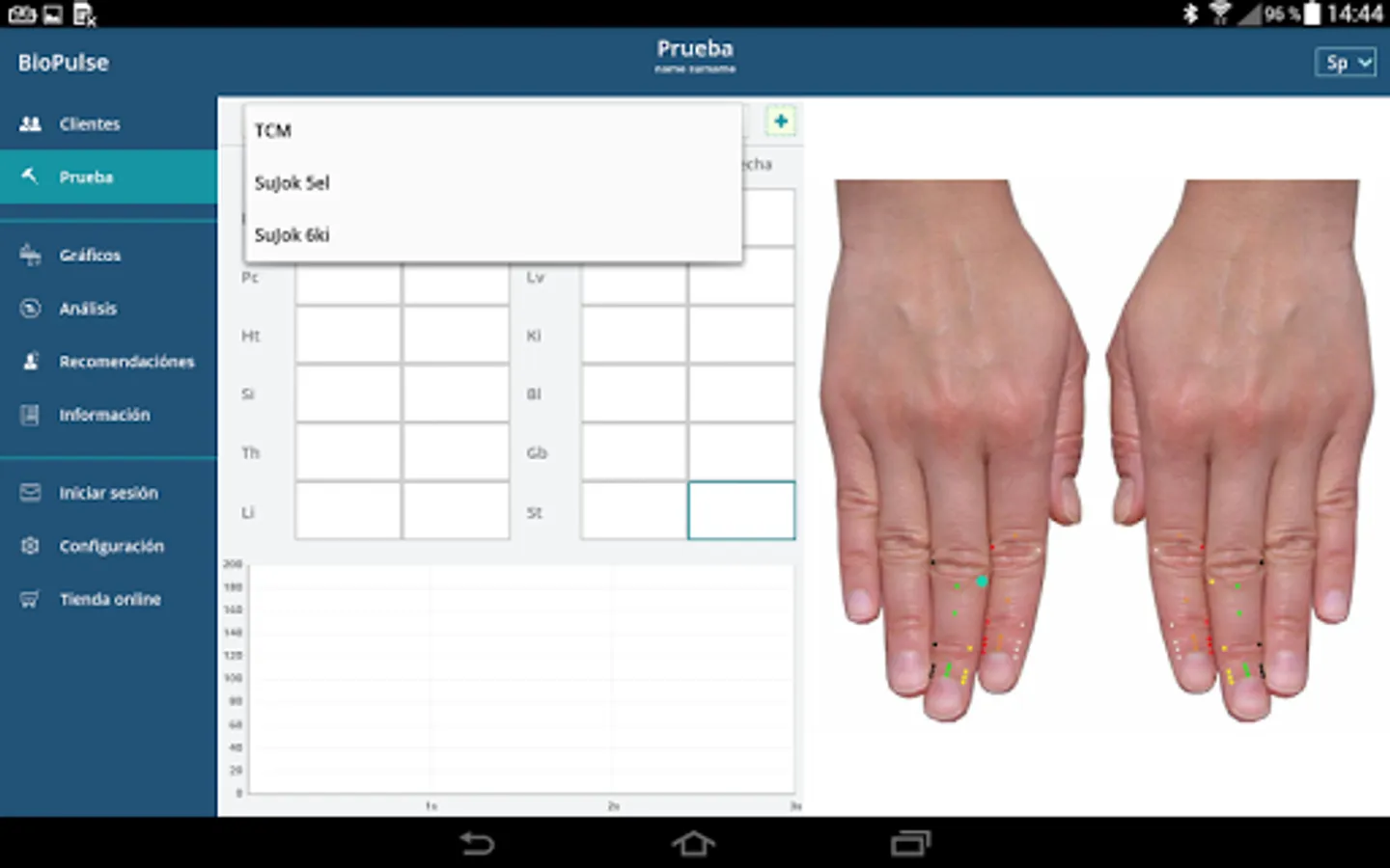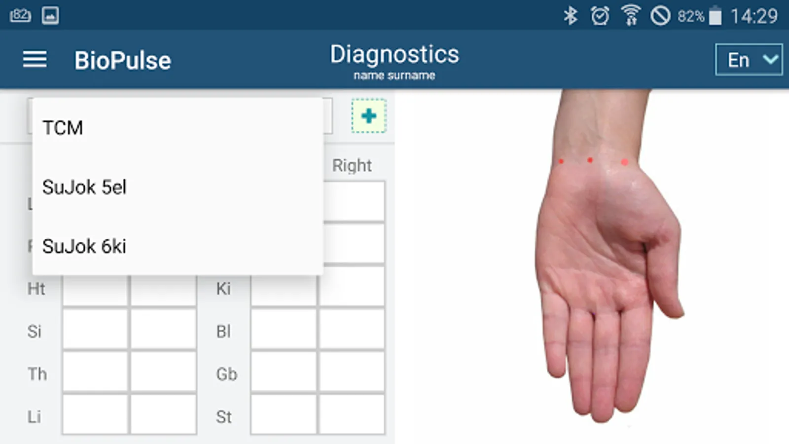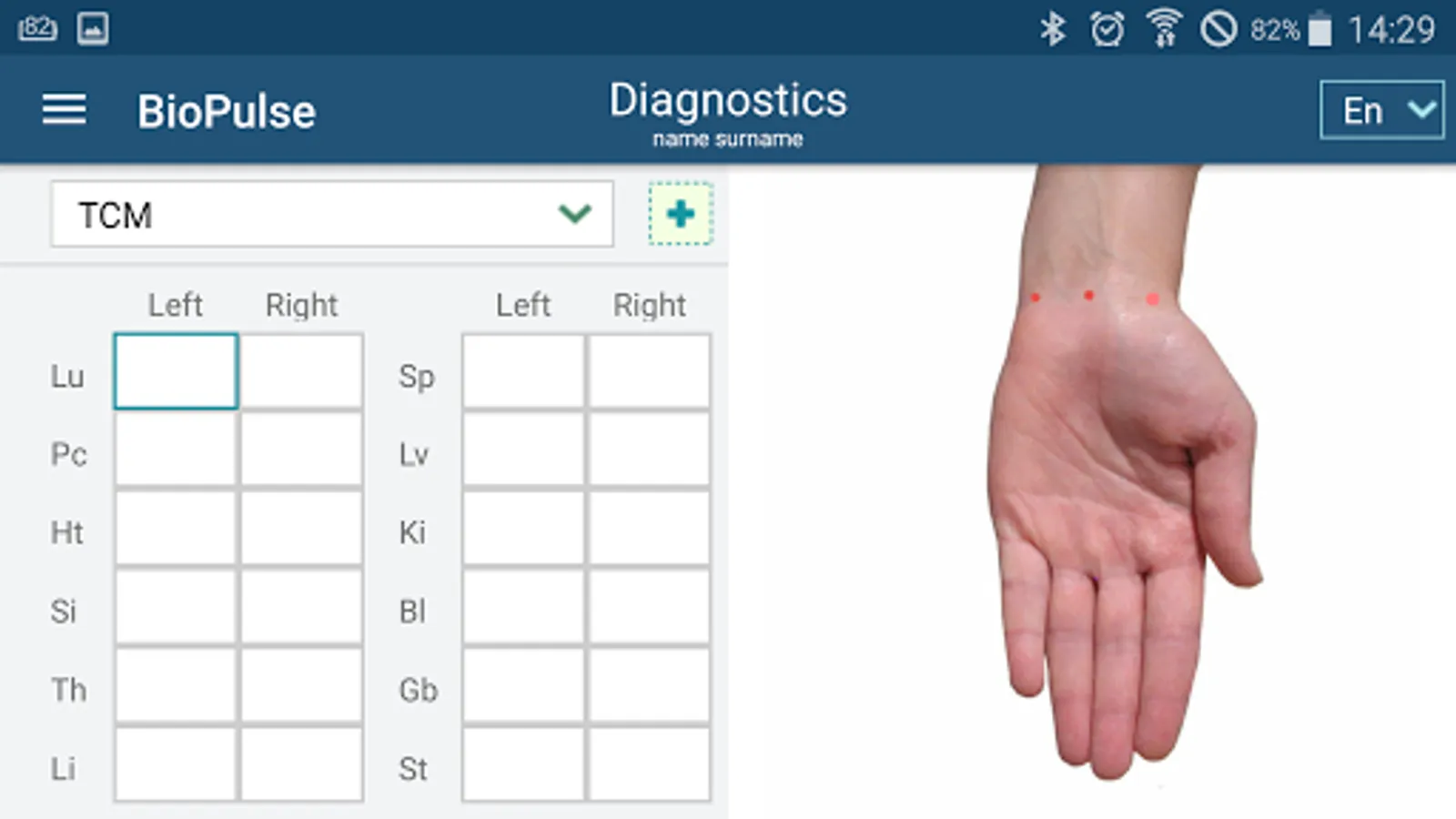 In order to enter measurement values, you can use the device Biopulse Pro to measure acupuncture point and send measurement results via Bluetooth or if you have another measuring device, you can enter measurement results manually.