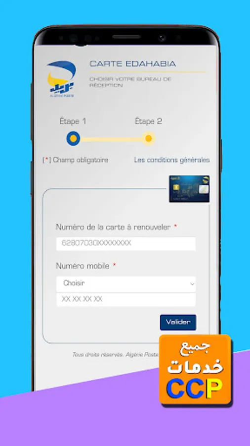 It is a mobile application that provides you with a range of electronic banking and postal financial services from Algeria Post. It helps optimize your time and manage your CCP account and your self-service operations, from anywhere, anytime.