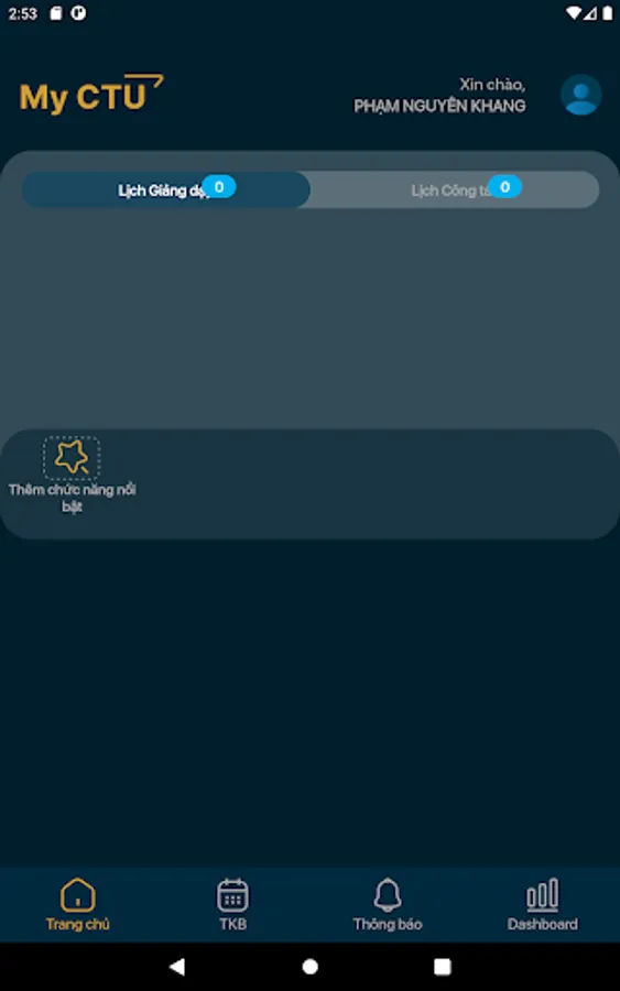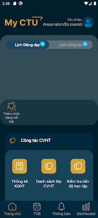The application supports Can Tho University staff to view teaching information, announcements from the school, teaching schedule, and input learning results for students.