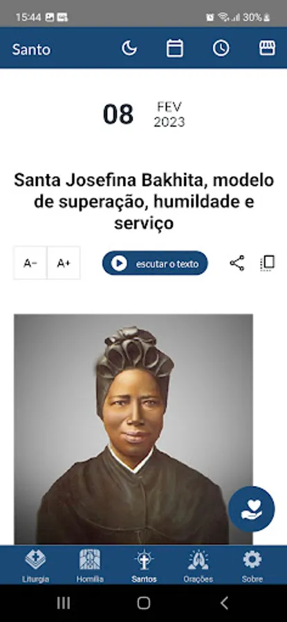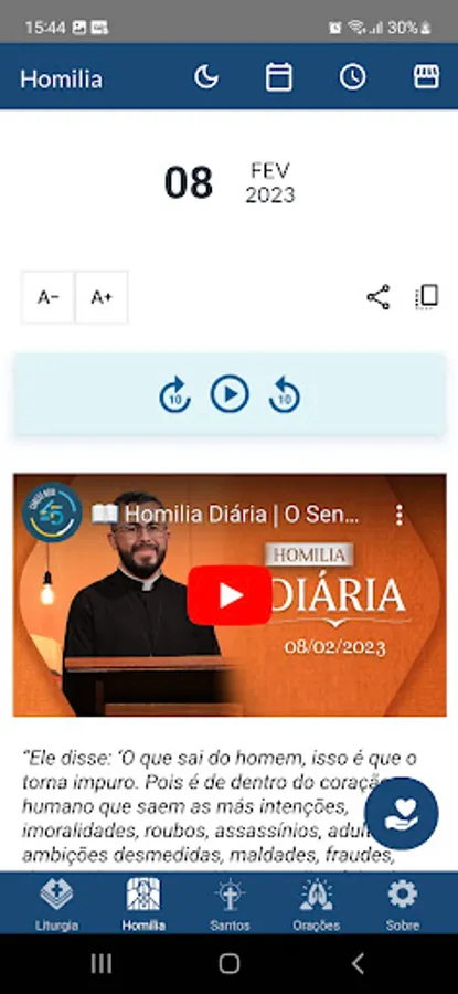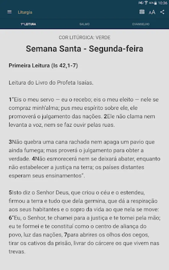 The application provides the daily Bible readings and a reflection of the Gospel of the day in text and audio. In addition, the user can schedule the time you want to be warned to study the Word.