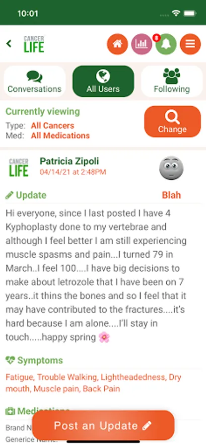 Cancerlife is the only consumer app that is clinically validated in a randomized control trial sponsored by John Wayne Cancer Institute to raise quality of life by 14.3%. Our platform allows patients to share their health status with other patients and get social support using a form of cognitive behavioral therapy that improves quality of life. Any patient regardless of location can use CancerLife to take control of their care and improve their mental and physical health. There are many cancer apps but none that have been validated to actually raise quality of life like CancerLife.