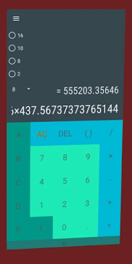 A simple calculator for binary, octal, hexadecimal or any number from base 2 to base 36