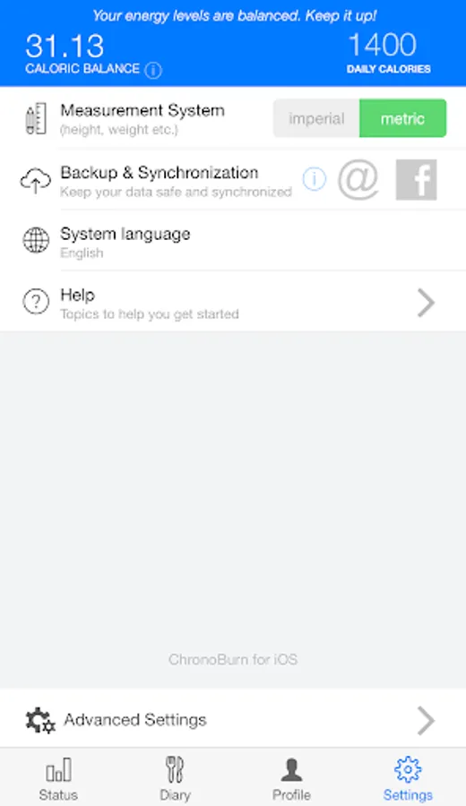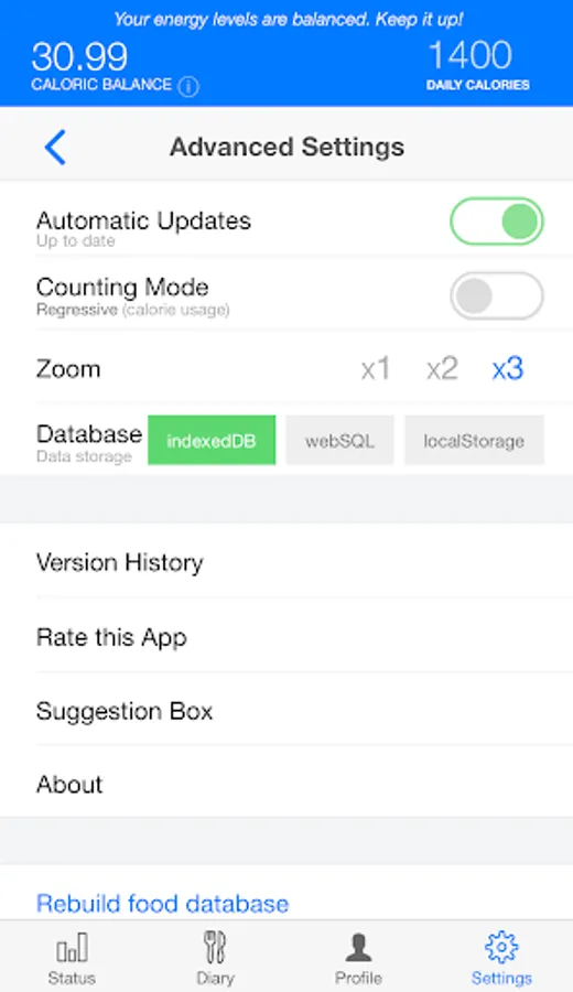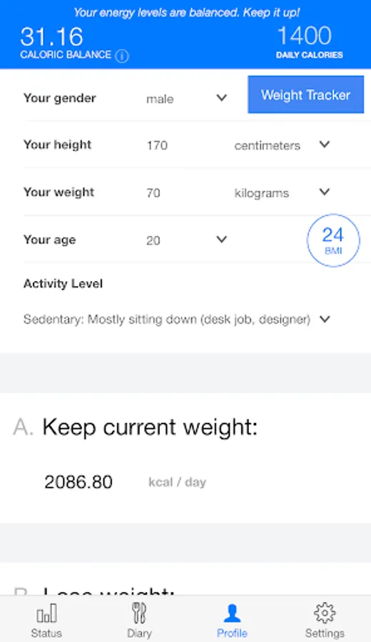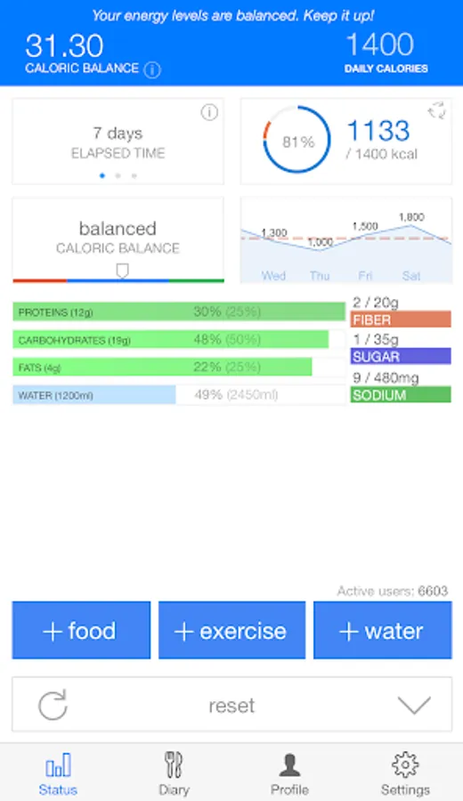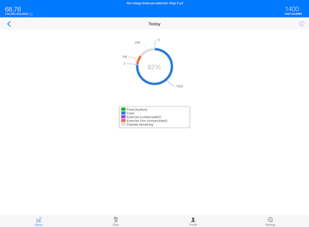2 - The idea is simple. Define a goal (daily calories) and keep yourself Balanced in the context of this goal. The app will indicate when you’ve eaten too much (surplus), or too little (deficit)