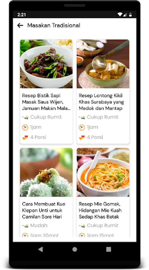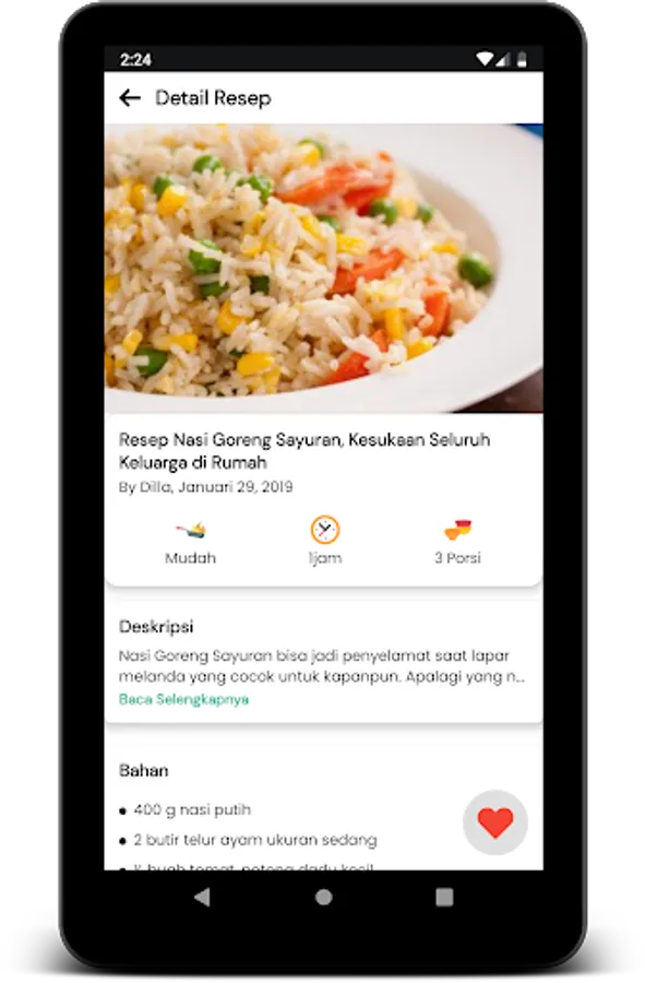 Food Recipes serves a variety of recipes from modern cuisine to traditional recipes. You can also favorite the recipe so that if one day you want to find the recipe, just open the favorites menu. You will know how long the food can be served, the ingredients that must be used. In particular, Indonesian recipes are very diverse.