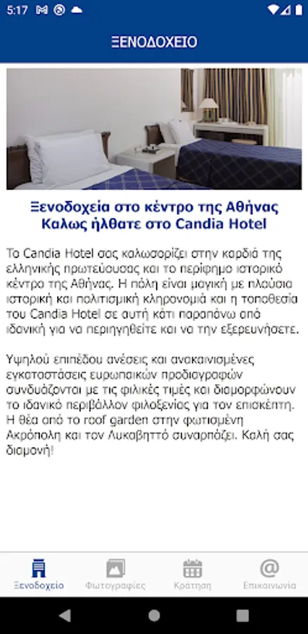 To Candia Hotel σας καλωσορίζει στην καρδιά της ελληνικής πρωτεύουσας και το περίφημο ιστορικό κέντρο της Αθήνας. Η πόλη είναι μαγική με πλούσια ιστορική και πολιτισμική κληρονομιά και η τοποθεσία του Candia Hotel σε αυτή κάτι παραπάνω από ιδανική για να περιηγηθείτε και να την εξερευνήσετε.