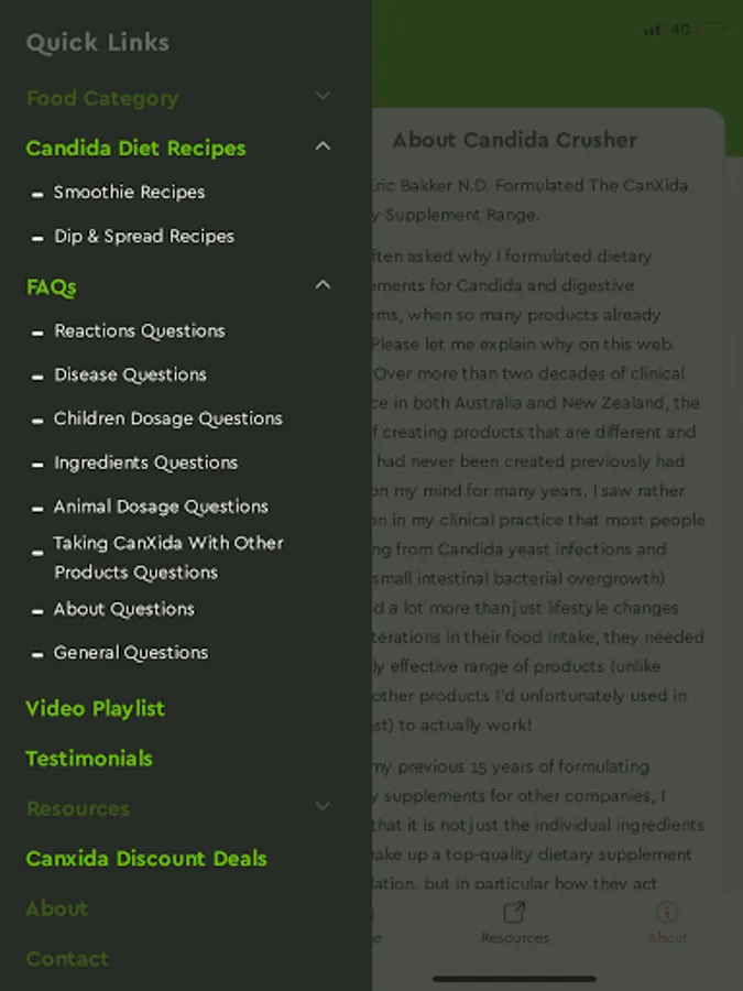 • Links to “Eric Bakker – The Naturopath” YouTube channel where you can watch over 2000 free Candida & gut health related videos.