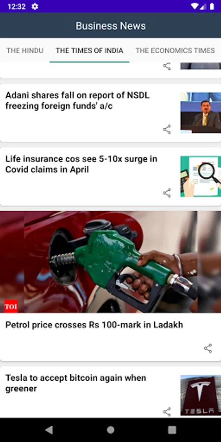Now Top news paper's news available in single place. You don't need to have separate application installed on your phone for the business.