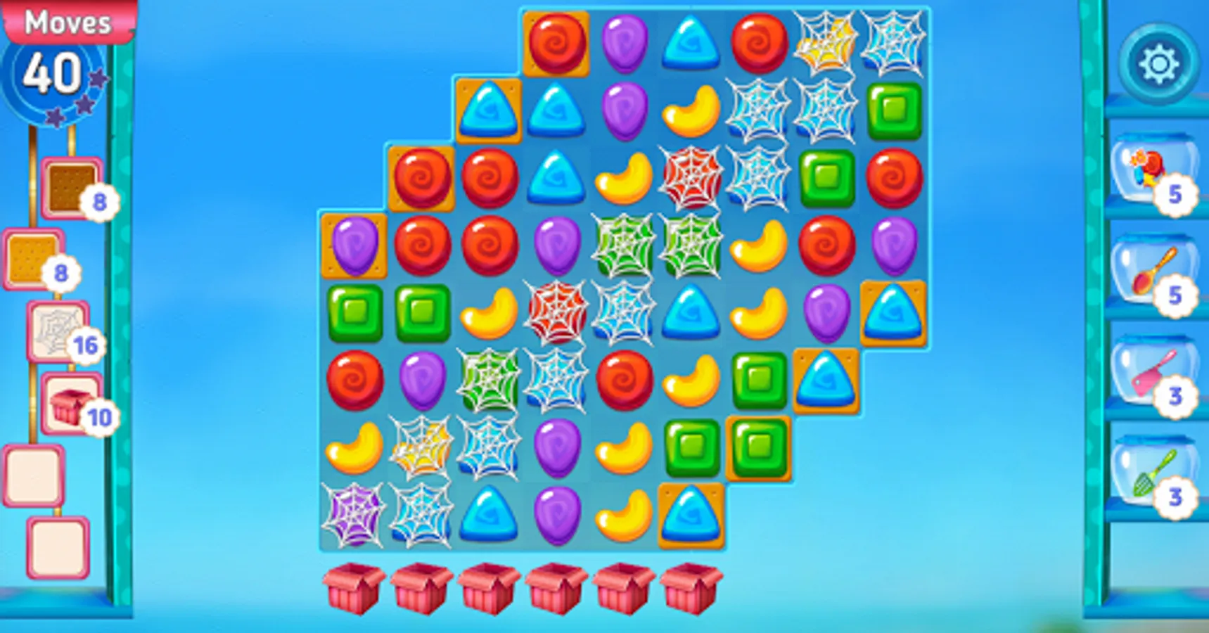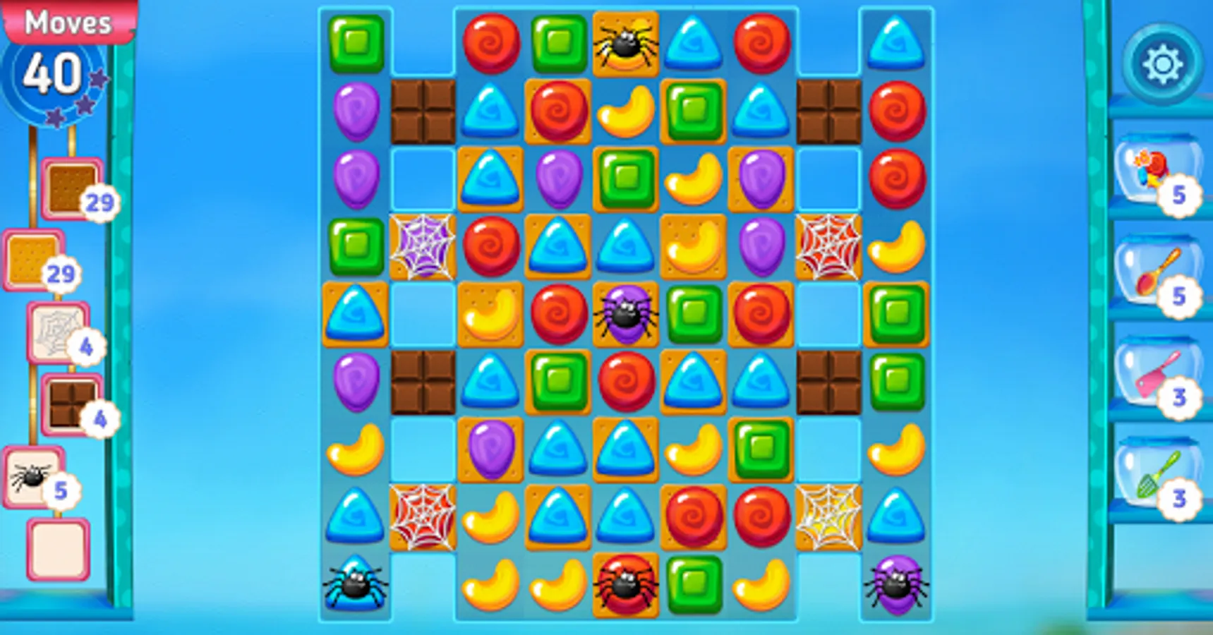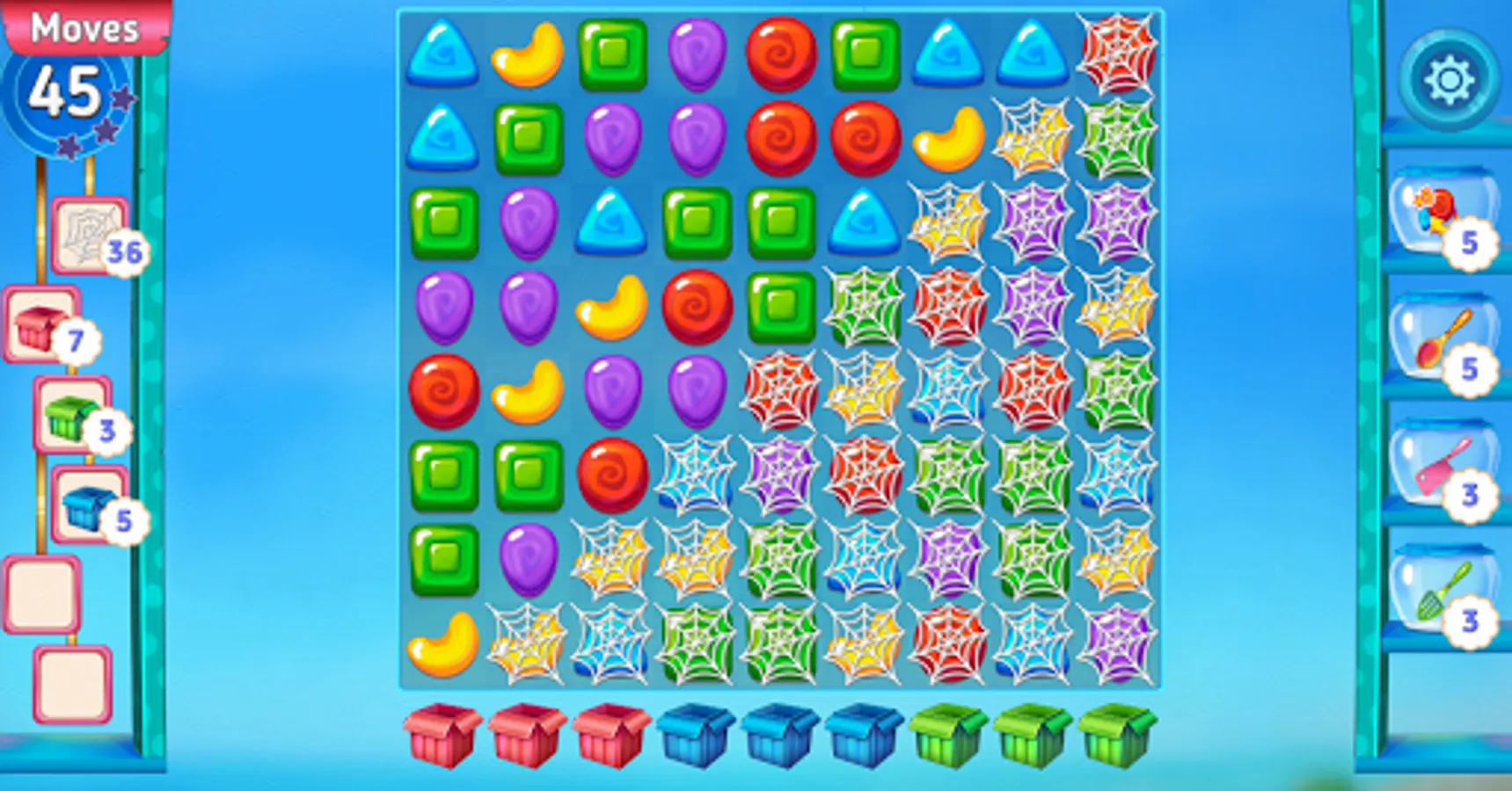Get ready for addictive candy game with nice puzzles. Crush your way through an action packed journey filled with dozens of tasks. Remember: a candy blast is the best sweet treat for spiders.