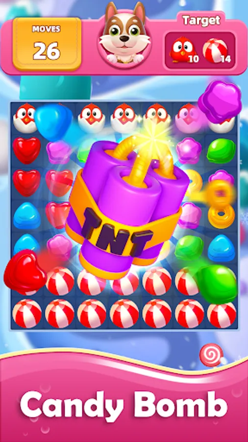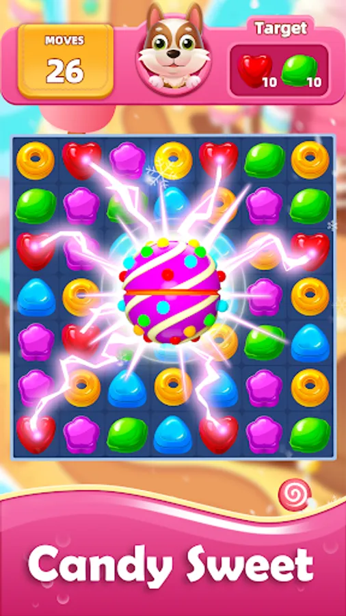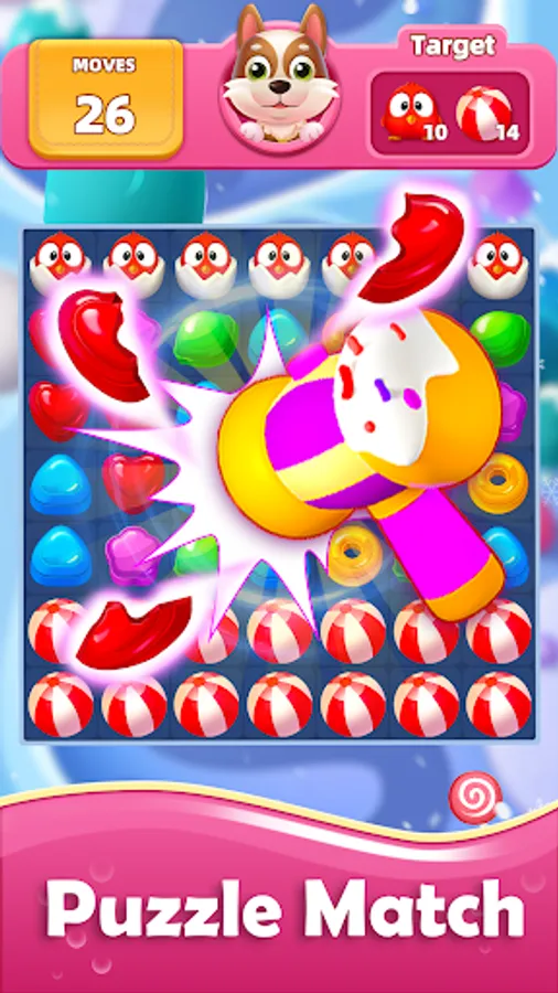 Candy Sweet Dog Puzzle Games is a new Match 3 Game that features adorable pets like dogs, dobs, beetles, ladybugs, and small insects. The game is easy to play but challenging to master. The goal is to eliminate a specified number of blocks or achieve a specified score within a given time or number of steps.