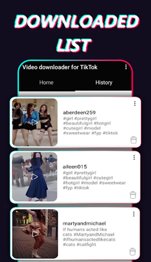⭕️ TikTok Video Downloader lets you download highest quality possible and original content without any changes on video but only remove and delete the TikTok watermark. Downloaded videos are saved on the seperate tab to manage downloaded high quality TikTok videos at ease.