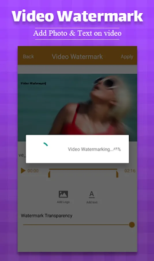 Here you can having facility to create your own watermark video with your custom image or text from your phone. It is more useful for all the users who want to add watermark in video.