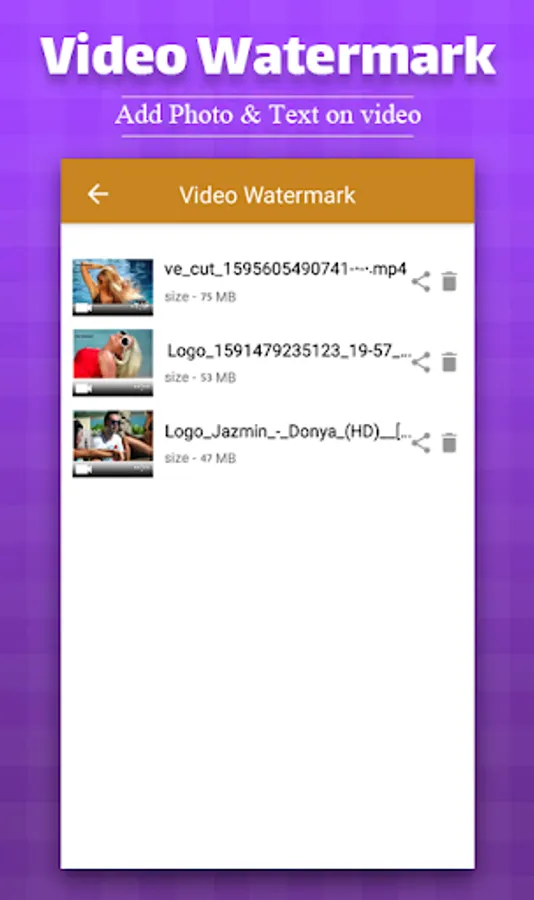 Protect your Videos and Photos by adding watermark πͺ. Create your own brand identity and watermark your Videos. Best thing is that you have lots of control to make your own customized watermark and adjust its size, transparency, rotation, alignment, then save and share it on any social networking platform directly from the app.