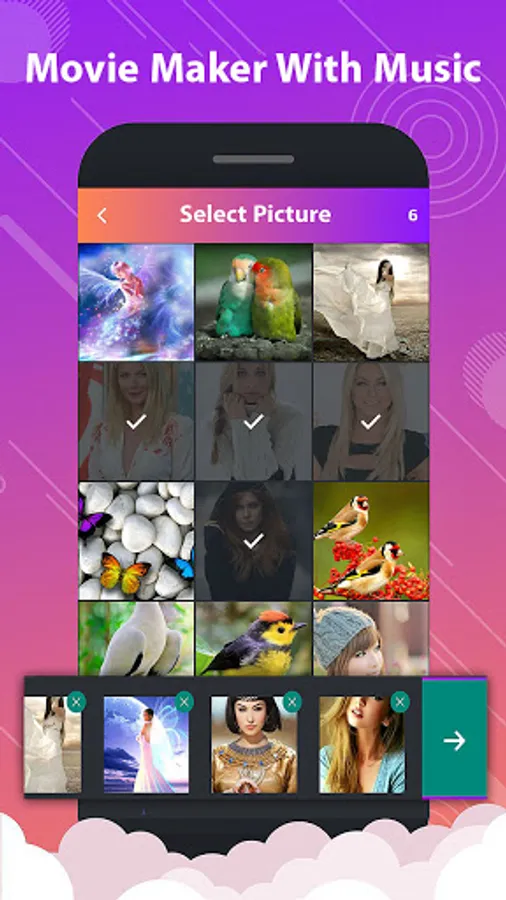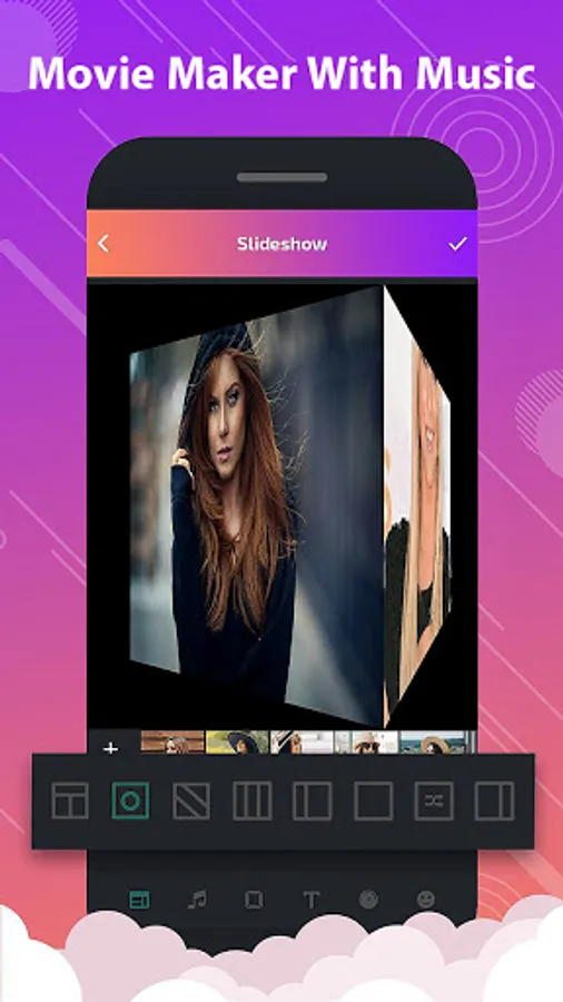 Slideshow Movie maker with music app convert photos into stunning videos. Convert your photos to video with video editing tool Photo Video Movie maker. Add background music from your own music, while creating Video using Video Maker App.