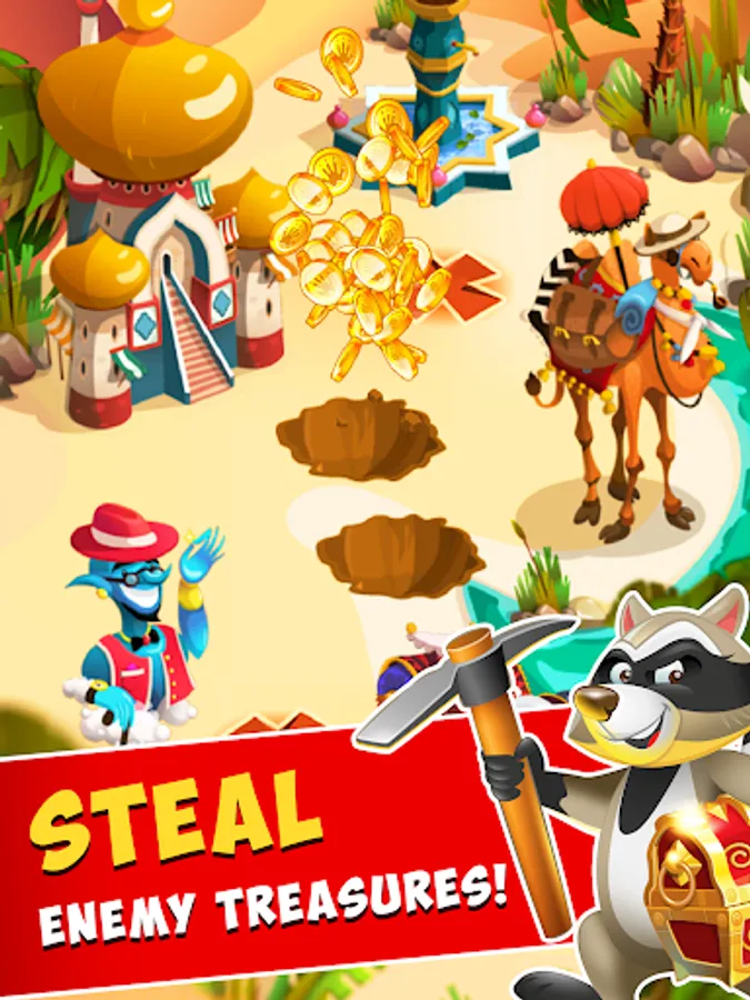 Wreak havoc and steal the treasures from the opponent! And if someone dares to touch your wealth, you can always take revenge on them!