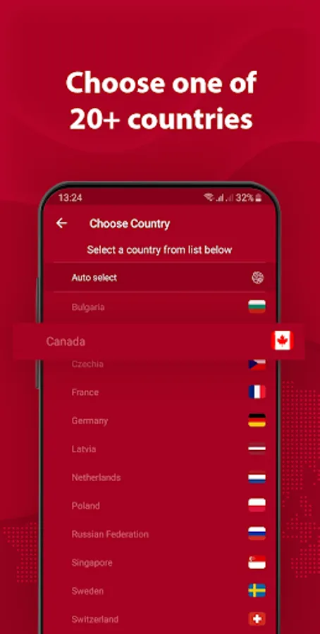 We have more than 500 server in 15+ countries that provide high-speed vnp connections. Select any country, connect to the server and enjoy professional appvpn.