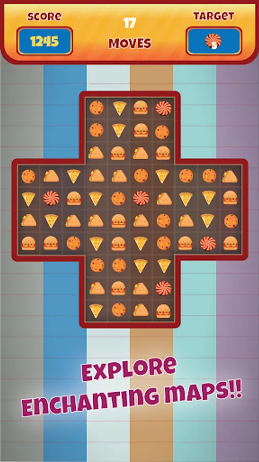 The Match 3 puzzle game offers an addictive and entertaining gameplay experience that will keep you hooked for hours. Swipe and switch food items to create matching sets, triggering delightful cascades and combos that will skyrocket your scores. As you progress through the levels, the challenges will become more intricate, requiring strategic thinking and clever moves to overcome in the candy match puzzle.