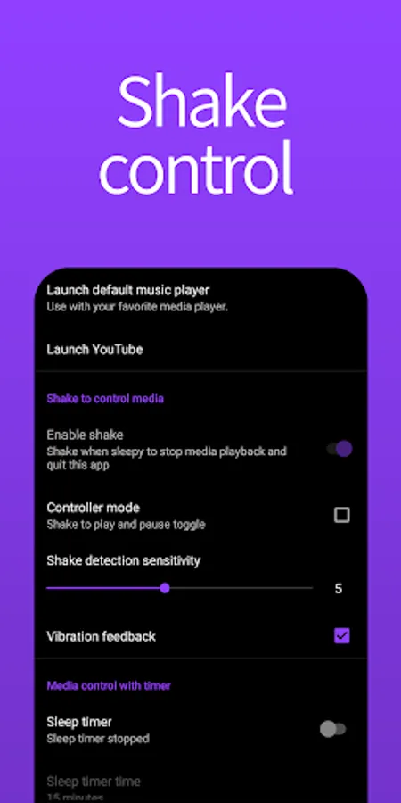 Controller Mode - Using controller mode, shake to toggle playback and pause of the currently playing media. (Useful for listening to music while watching a video lecture or doing other work.)