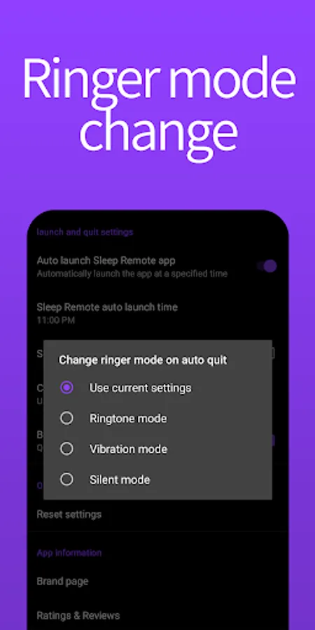Change ringer mode - You can automatically change the ringer mode to vibrate, mute, etc. when you quit the app after completing the shaking gesture or sleeping sleep timer to avoid disturbing your sleep.