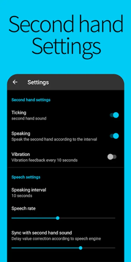 - You can adjust the second hand sound and voice sync according to the speech engine.