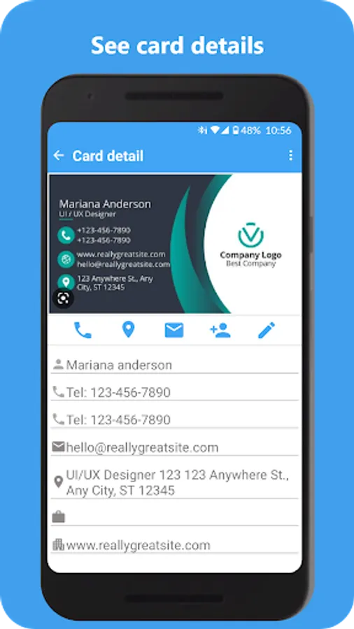 CardScan is an efficient business application that takes photos of business cards and scans them in the fastest way and automatically fills in and saves the information on the business card.