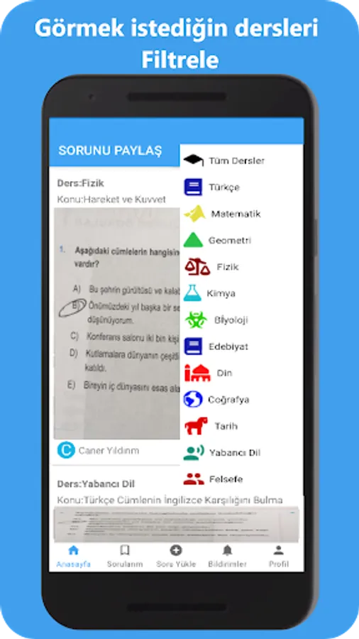 In your preparation for the yks exam, share the problem yks application will be your supporter. If there is a question that you cannot solve, you can share it and take a look at the solutions of other users. Again, you can improve yourself by solving questions that other users cannot solve. The more questions you solve during the exam preparation process, the closer you will be to success. You will get rid of the question marks in your mind with quick responses to the questions you cannot solve.
