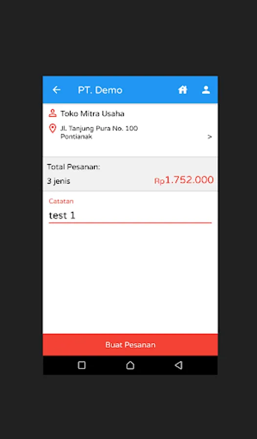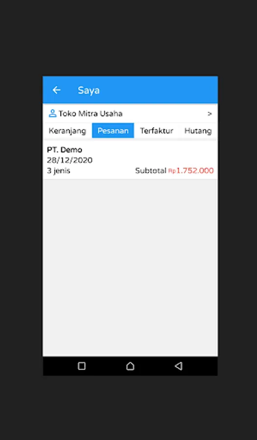 TokoPro support application used by Customers to make Orders. Orders from these customers will then enter TokoPro and can then be processed into a Sales Invoice.