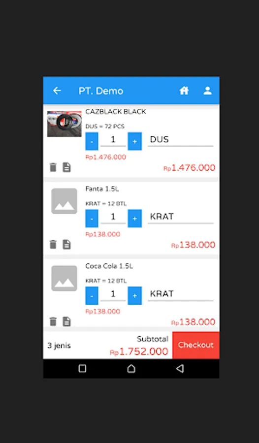 Run the application> select the Food & Beverage category> PT. DEMO