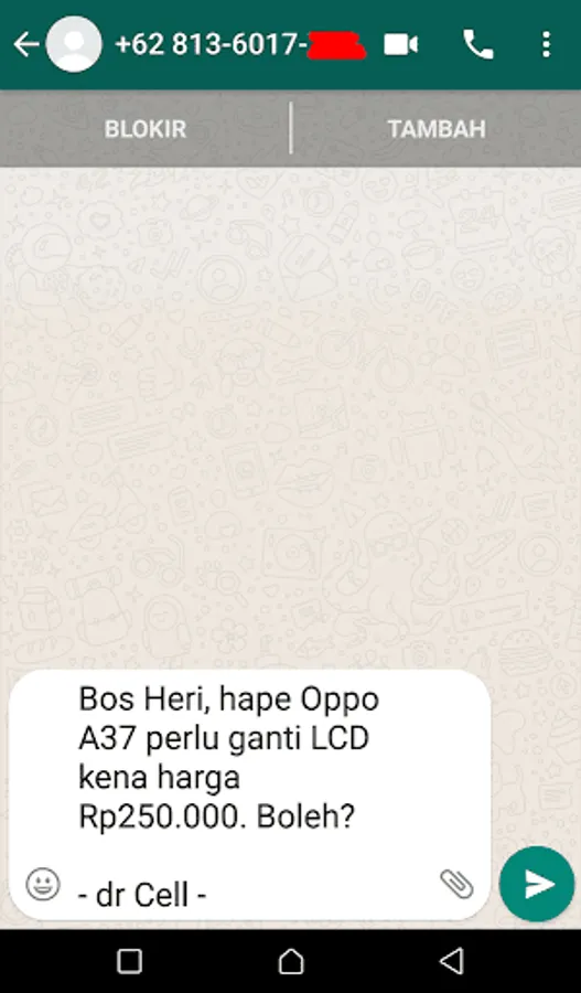 - Initiate WA chat messages without having to add the destination number to the phone contact list.