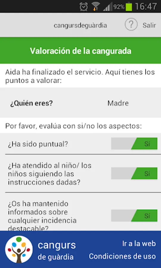 Sign up on the website CangursdeGuardia.com/es and you can get easily from mobile and / or the tablet, Kangaroo confidence you need to take care of your son / daughter where you tell him, within approximately 45 minutes.