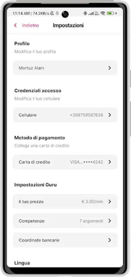 Al termine della conversazione l’importo viene pagato in automatico tramite la carta di credito che l’utente ha preventivamente registrato e verrà chiesto allo stesso utente di lasciare una recensione sull’esperienza avuta con il Guru scelto.