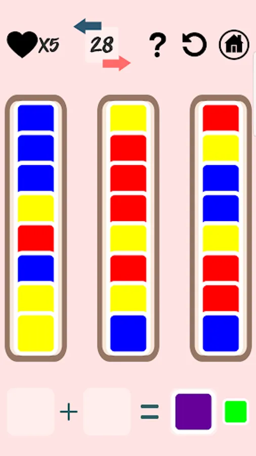 Die Grundlogik unseres Spiels besteht darin, herauszufinden, welche Primärfarben das Ergebnis der Mischungen der Zwischenfarben sind, die durch die schöne Harmonie der Primärfarben entstehen.