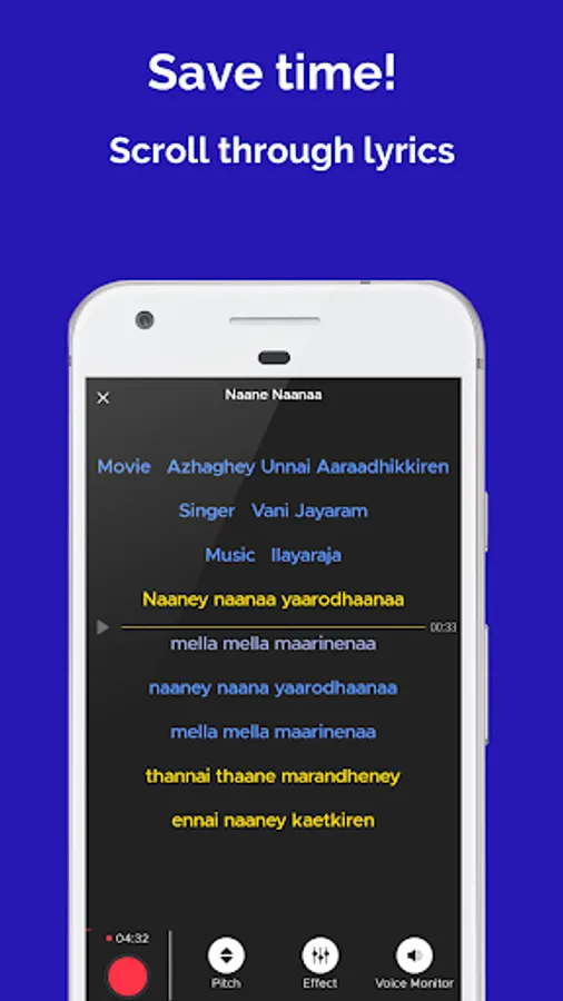 -Pitch selection option to sing comfortably.