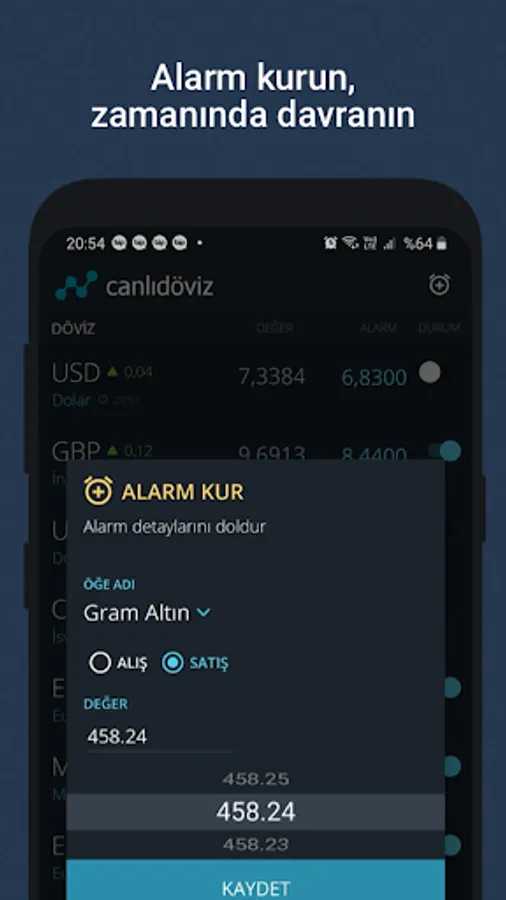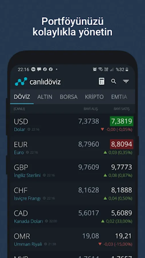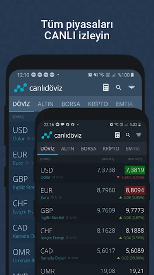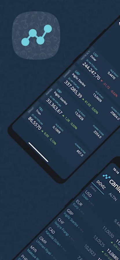We have been providing live exchange rates, live gold prices, commodity prices, stock market istanbul stocks and index, bitcoin, ethereum, ripple and all other symbols for 10 years on canlidoviz.com without interruption and completely free of charge, to be the only finance application on your phone from now on. we are here too. Enjoy using our simplified interface with our Dark or Live Currency theme, without annoying ads and free of charge for any features!