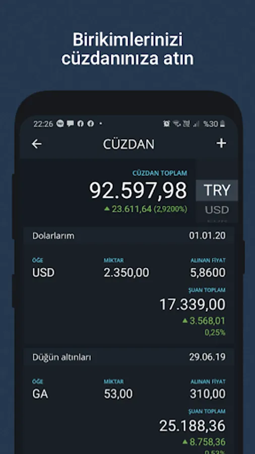 * With the wallet feature, you can instantly follow the profit / loss status of your investments in your bank accounts or under the pillow.