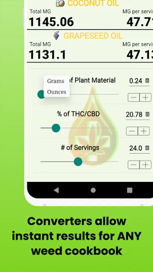 Cannalator comes with convenient converters. Including gram to ounces, tablespoon to cups.