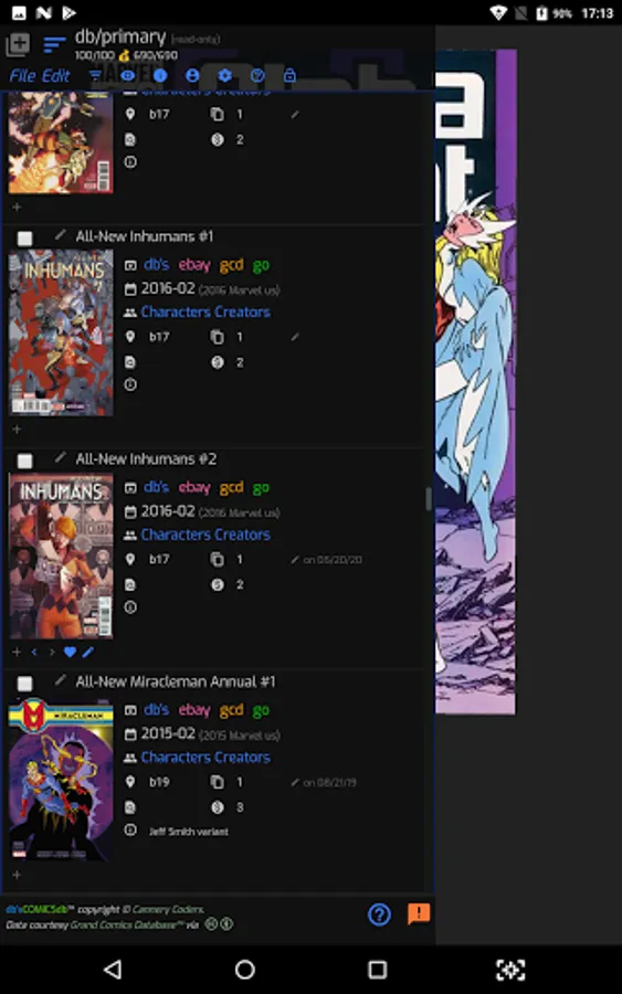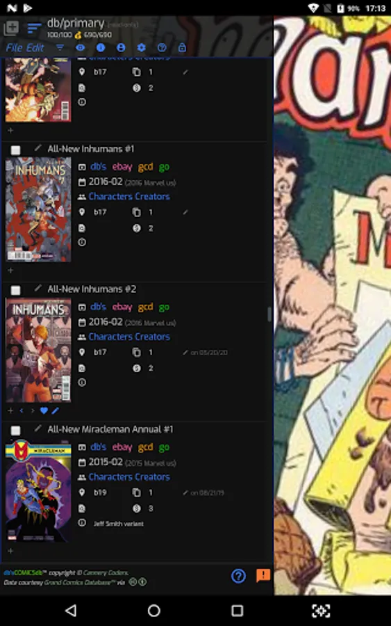 Unique among comic-collector apps, db'sCOMICSdb is ad-free, has an open-data architecture and can be useful without internet access. It's a simple, no-nonsense, highly visual comic database!