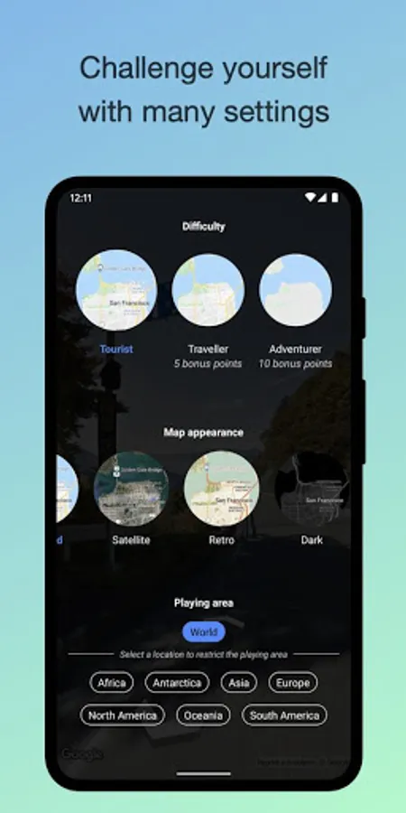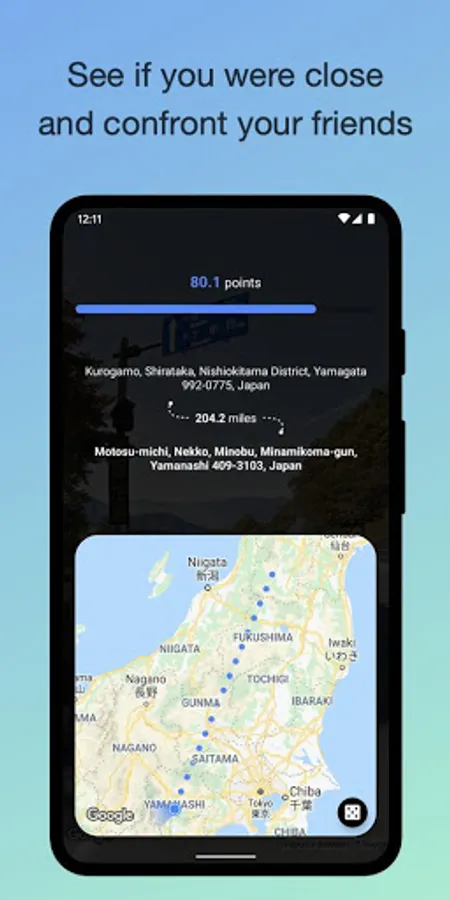 In each game, you'll get a score based on the distance between the guessed place and where you were.
