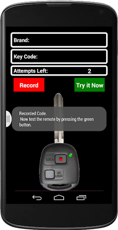 With this application may emulate basic functions of your car key infrared entering the brand of your car and the code of it.