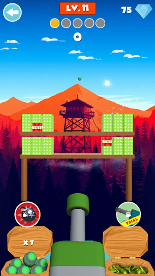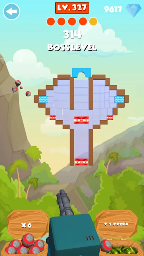 player has to hit and destroy the target objects with cannon to clear each levels. With increase in levels, difficulty will also increase. to solve difficult levels you need to upgrade your cannon with more powerful cannons. Playing more levels you can collect more diamonds and with diamonds you can purchase powerful cannons.