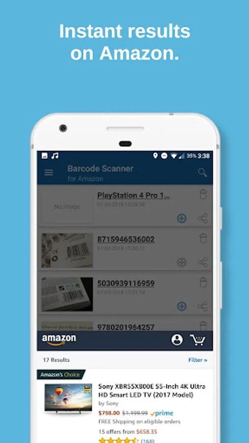 ⦁ Scan barcodes and view the product on Amazon in seconds