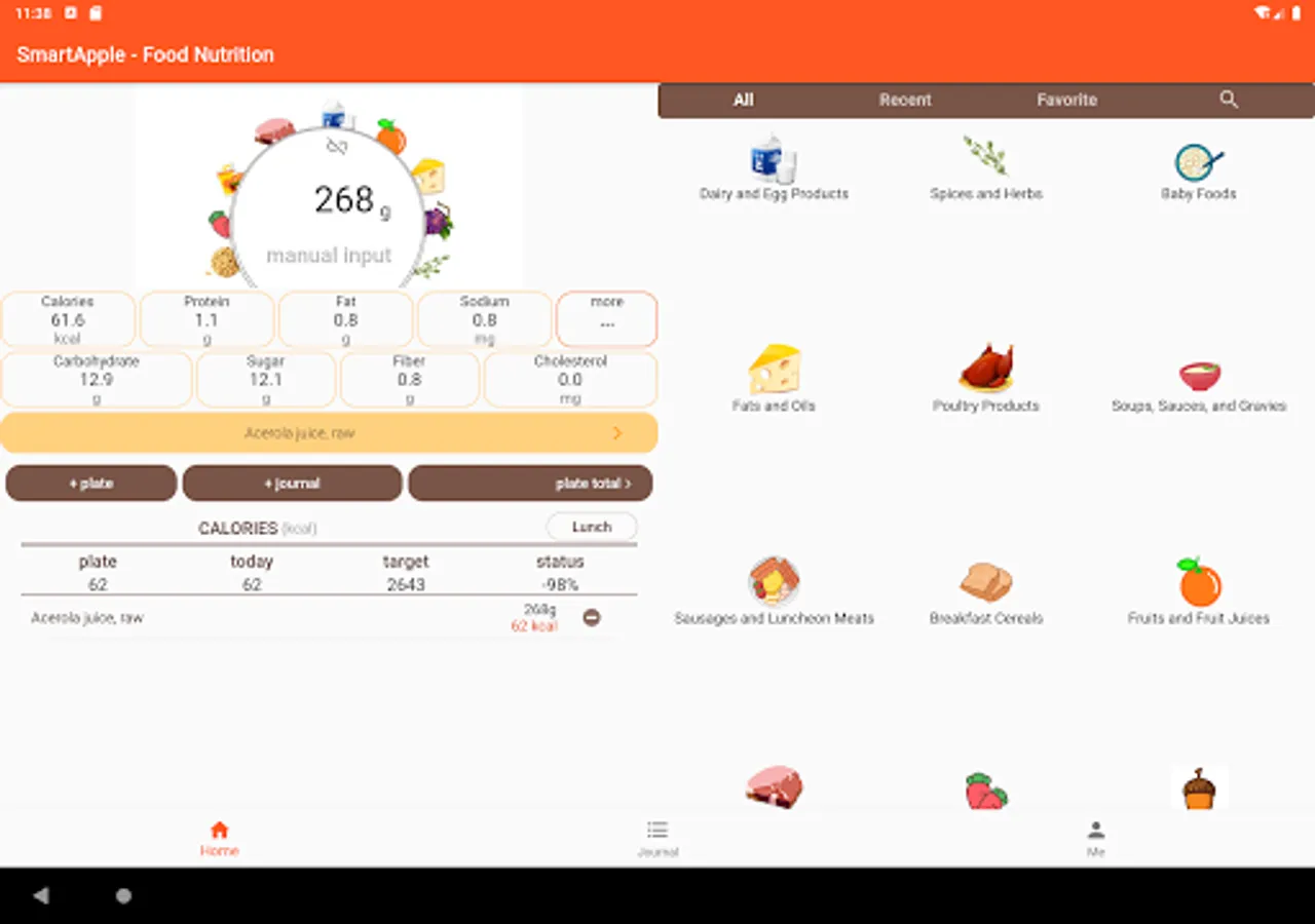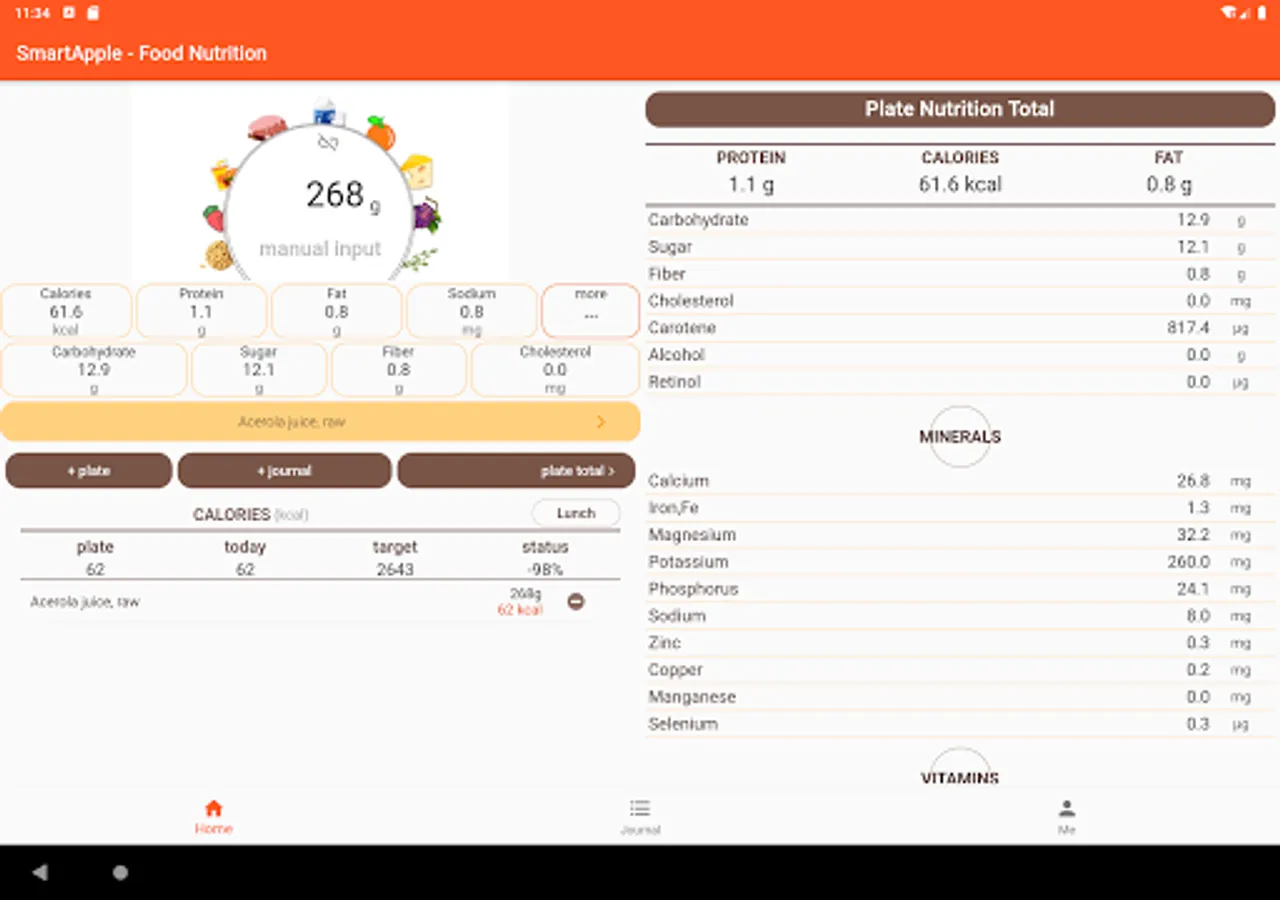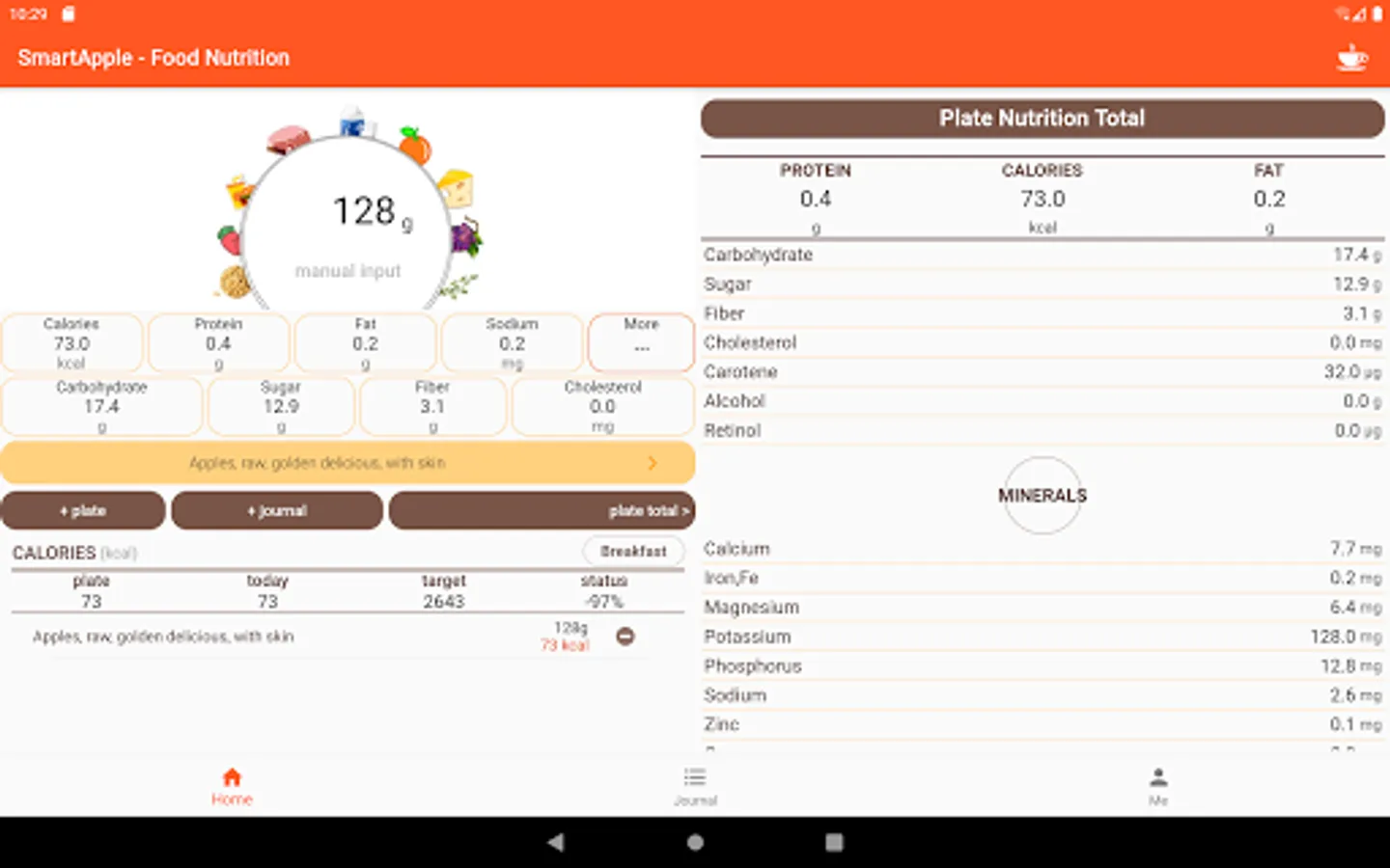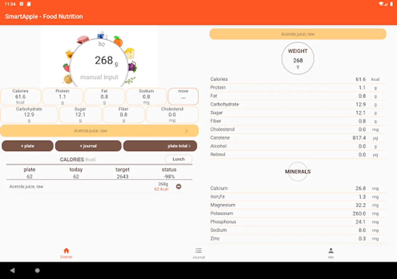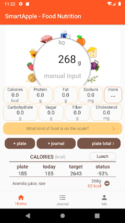 Support manual input the food weight, or connect to Bluetooth kitchen scale to get the weight of food
