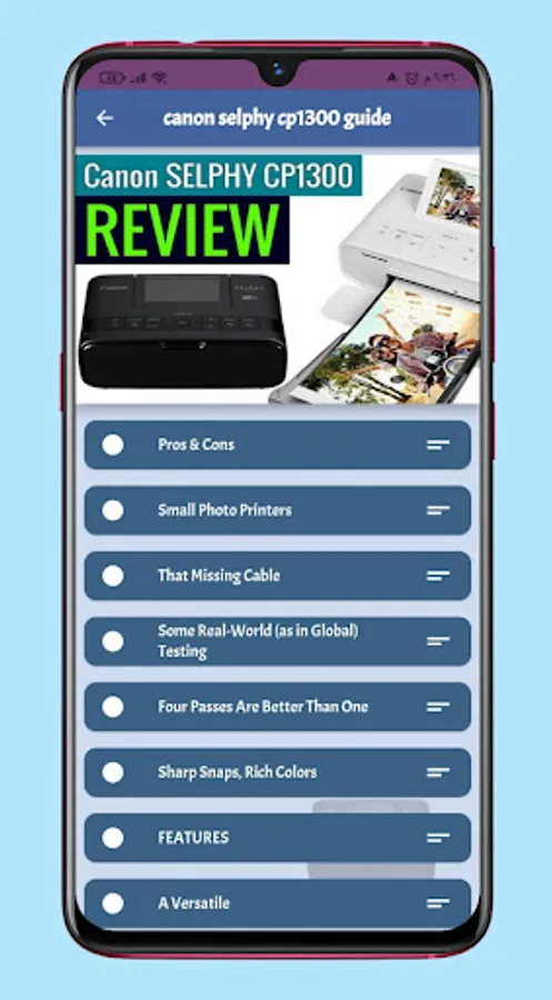 Through the application Canon selphy cp1300 printer you can learn about many specifications and features of a printer Canon selphy cp1300 printer, and the application also includes an application Canon selphy cp1300 printer on the video, features and specifications easily