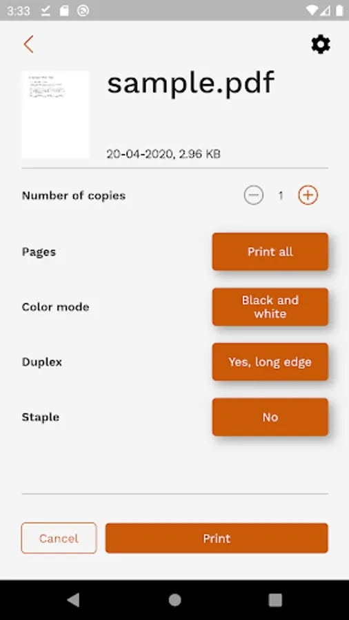 • Manage your print job settings such as numbers, staples, double-sided, color, ...