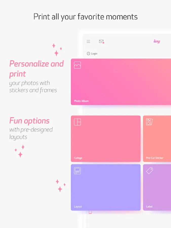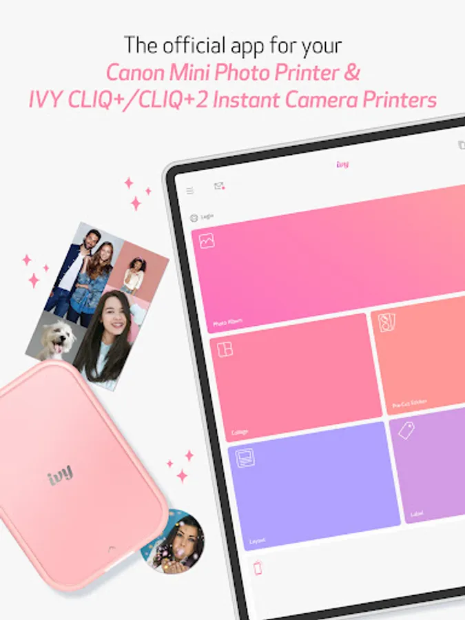 Get started using your Canon IVY Mini Photo Printer and IVY CLIQ+/CLIQ+2 Instant Camera Printers with the Canon Mini Print app. Personalize your photos with stickers, text, frames, filters, and more! Take photos to capture the moment, or access photos from your favorite social and cloud accounts to get creative with and share. When you’re ready, send your masterpiece to be printed and use the 2x3-inch sticker prints to dress up your room, notebook, locker, mirror, desk… well, almost anything!