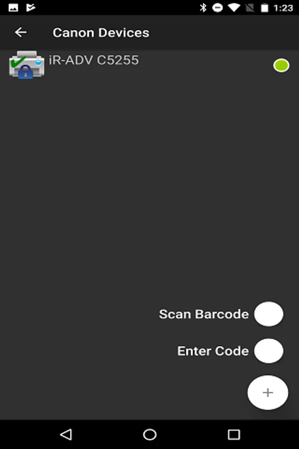 • If the entered code is valid, the Canon MFP will be added to the Canon Devices list.