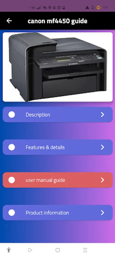 In Canon mf4450 guide app we supported many sections of content that will let you now more information about Canon mf4450 guide