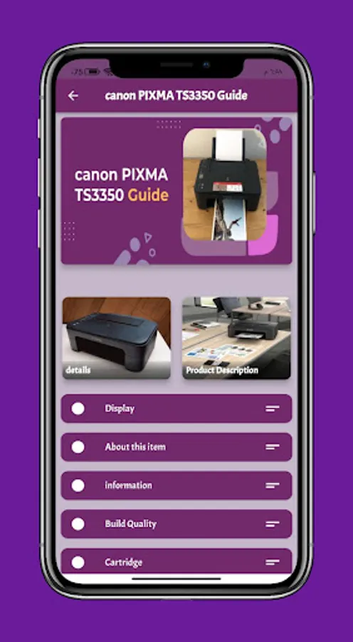 You can find all the details you require about the canon PIXMA TS3350 smartwatch in this app.