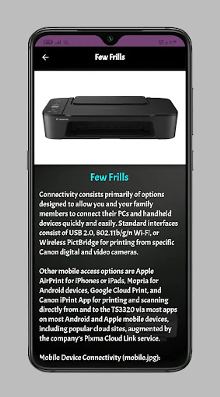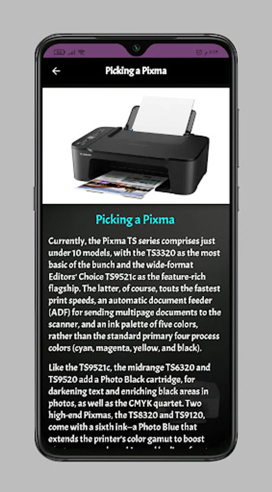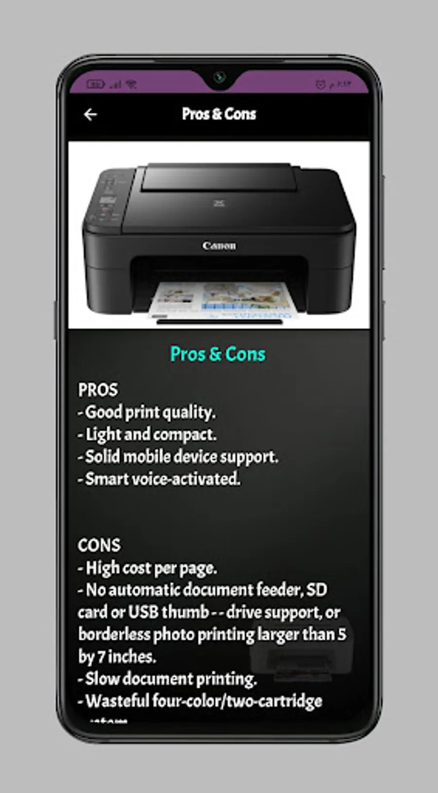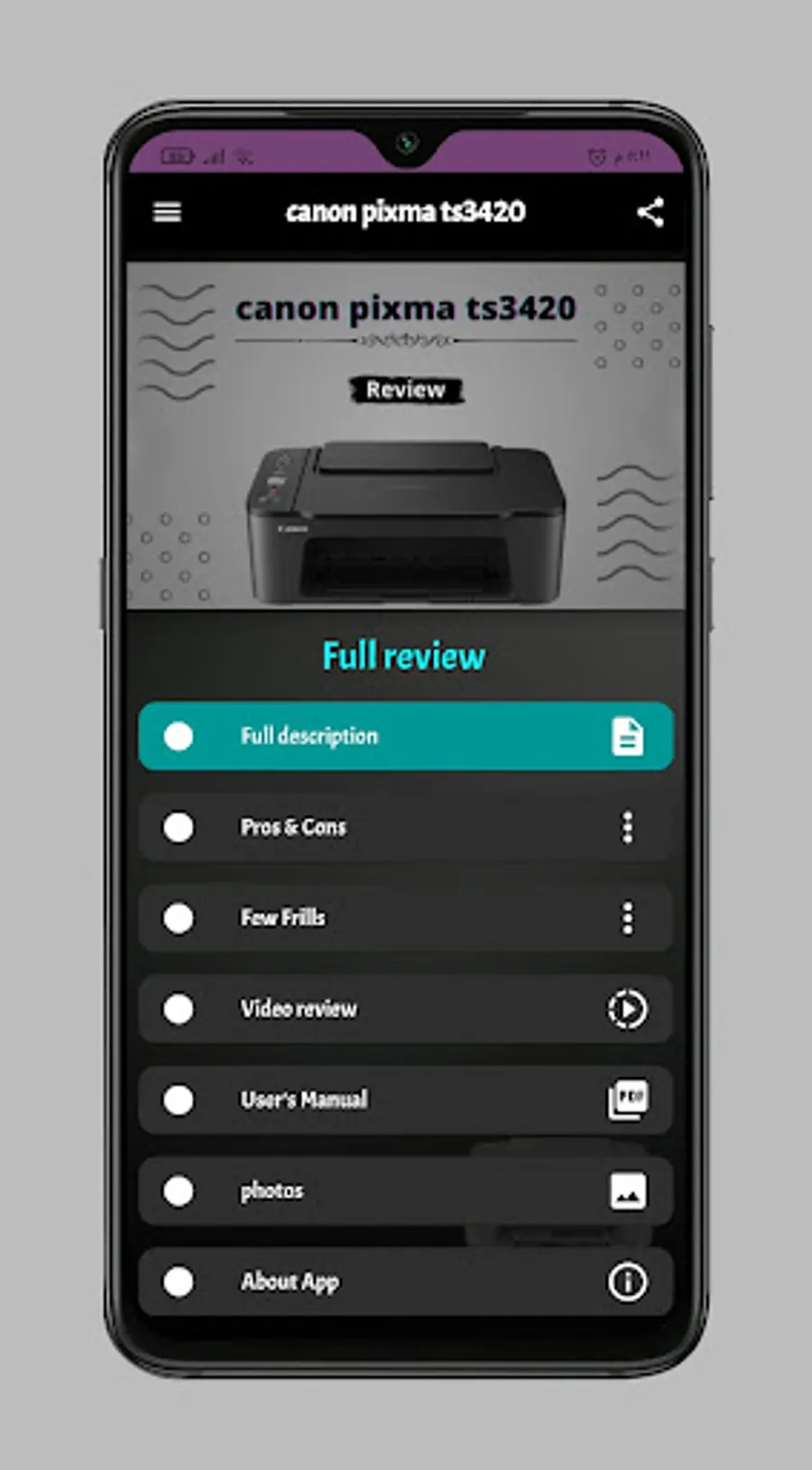 Through the canon pixma ts3420 printer guide application, you can review all the features, specifications, parameters and questions about the canon pixma ts3420 easily through the application, knowing what you are wondering about the Canon Pixma Inkjet printer.